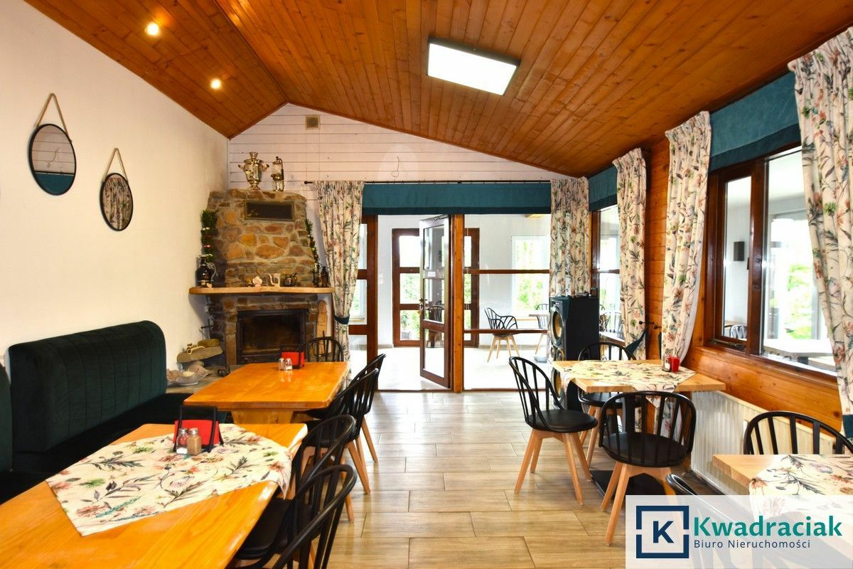 - Dodatkowko: drewniane zadaszone ławki (część restauracji w ogrodzie) oraz parking samochodowy. Wybudowane są fundamenty pod dwa kolejne domki o pow. 35m2.
